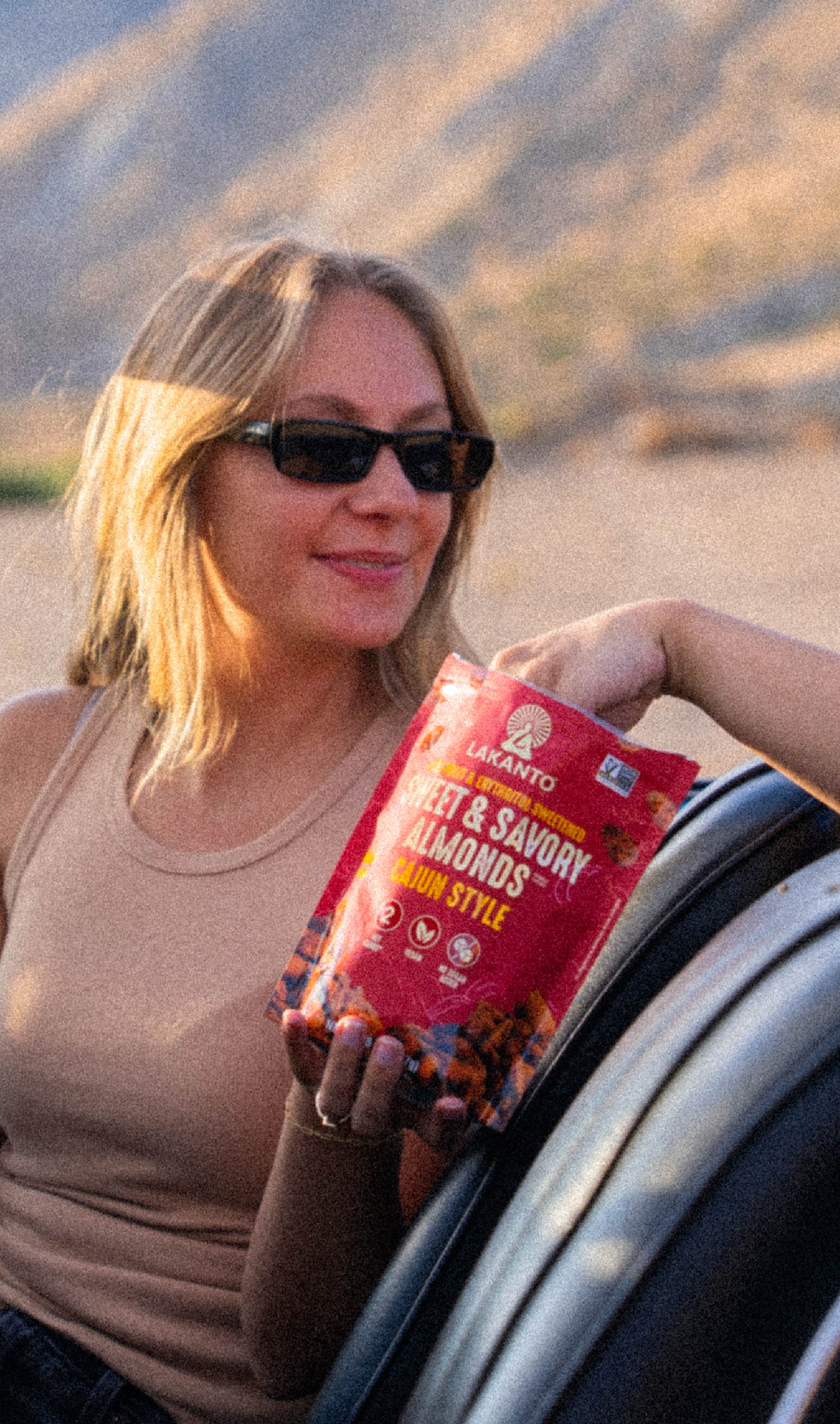 - Zero Added Sugar: Unlike traditional flavored nuts that are packed with sugar, Lakanto Cajun Almonds get their sweetness from monk fruit — so you can indulge in spicy-sweet flavor without the sugar crash.
