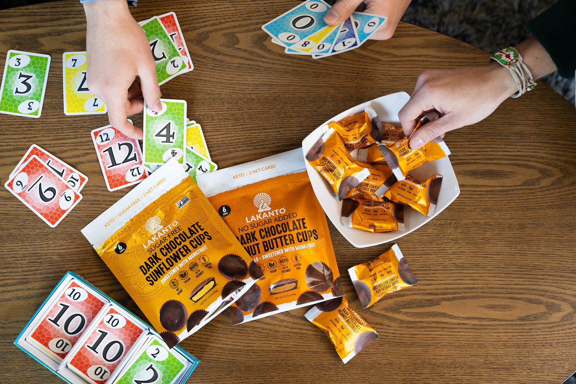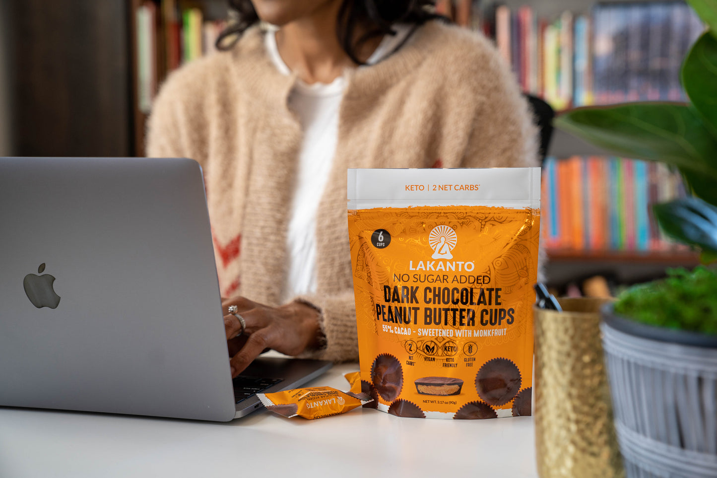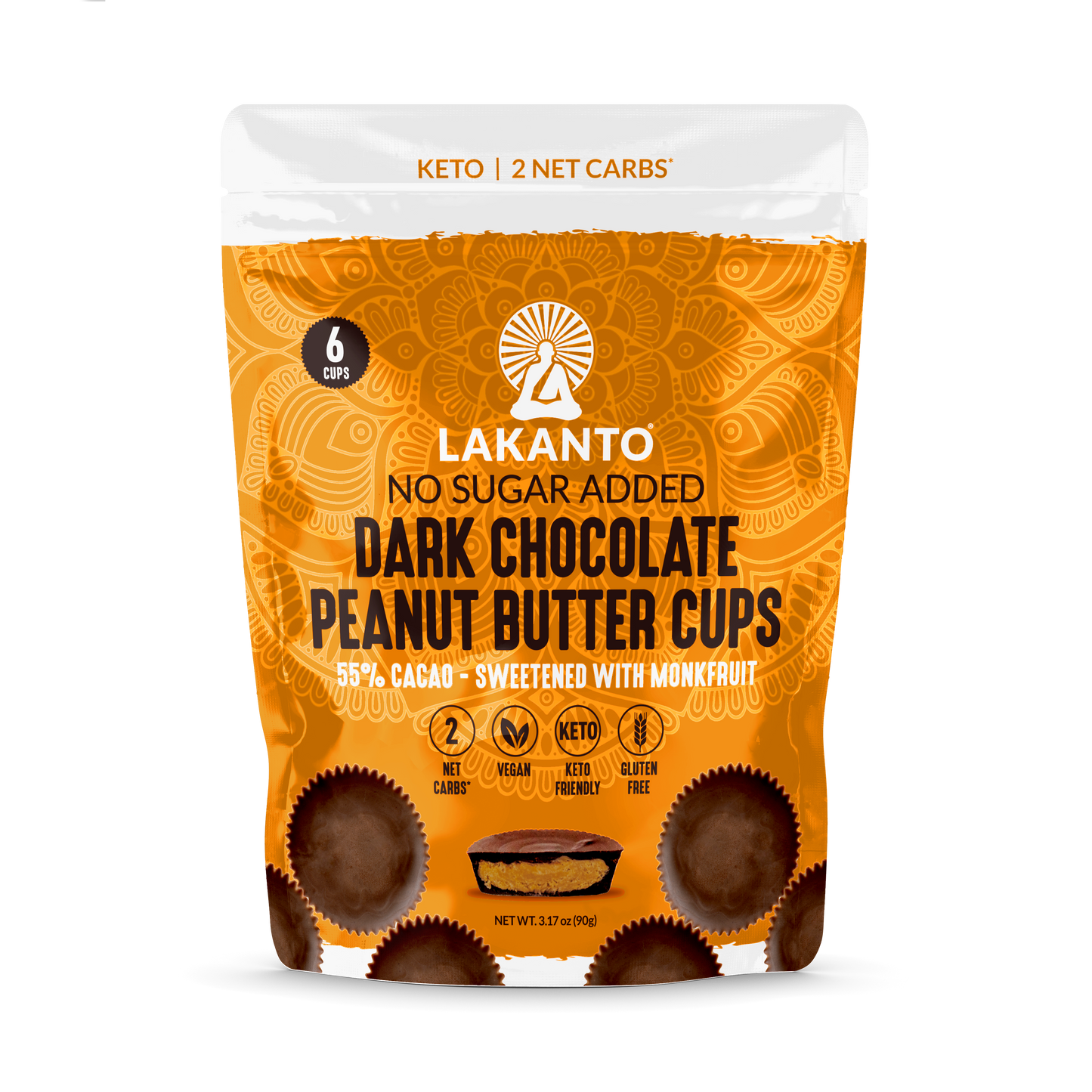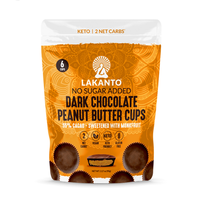 Indulge in our Dark Chocolate Peanut Butter Cups, made for sharing (or not!). These dairy-free, keto-friendly, and vegan treats have only 2 net carbs, no added sugar, and are non-GMO and gluten-free. Perfect for snacking or chopped up as a dessert topping. Now with a creamier peanut butter filling!